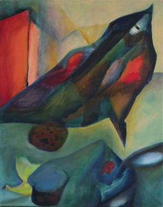 Abstract figuratieve werken, gebaseerd op kindertekeningen.